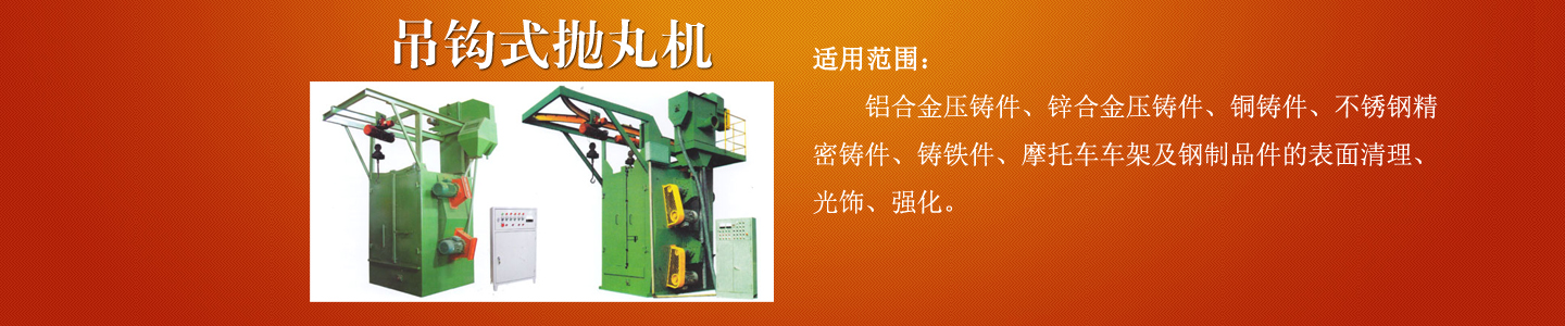公司主要產品有各種型號拋丸機、履帶式拋丸機、吊鉤式拋丸機、懸鏈式拋丸機、通過式拋丸機;各種型號鑄鋼丸、鋼砂、合金鋼丸、強化鋼丸、不銹鋼丸;噴砂設備;環保除塵設備;鑄造設備;高效拋丸器;各種型號拋丸機配件等,并可根據用戶產品及產量需求設計符合要求的拋丸機;本公司產品從設計、開發、生產到服務,全過程實行監控,其產品在全方位立體的營銷服務網絡中,遍布全國各省市區。